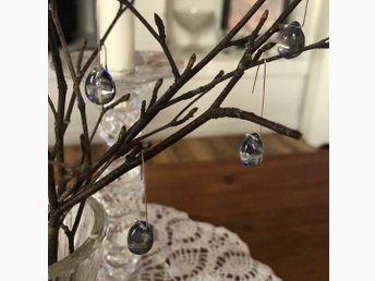 Glasdroppar 20st grå/blå. Hänge i silverfärg. Påskrispynt. Dekoration mm