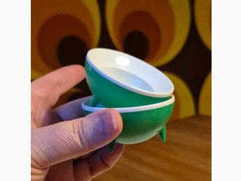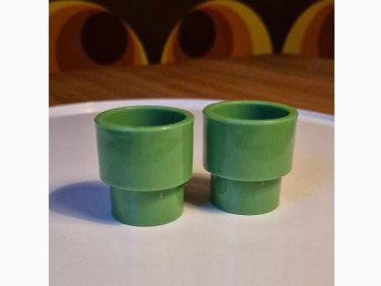 2 st äggkoppar, gröna, plast. Retro, danska.