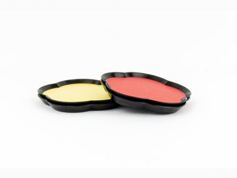 Fyra Vintage Glasunderlägg i plast, gula och röda.