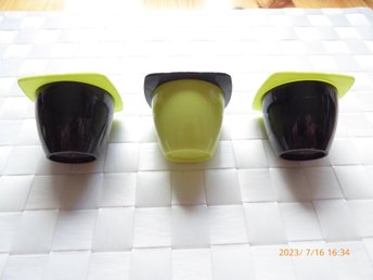 ÄGGKOPPAR i plast, 3 st, röd, gul, svart ** retro vintage 1970
