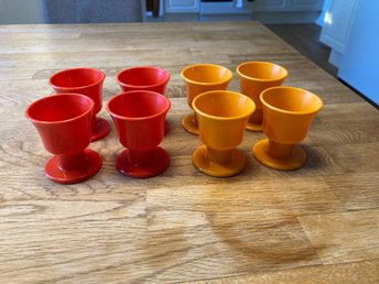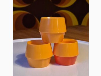 3 st äggkoppar. Plast, gul, orange. Retro.