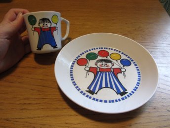 2st Gustavsberg Ornamin Stig Lindberg Barntallrik Barnmugg Barn Mugg Tallrik