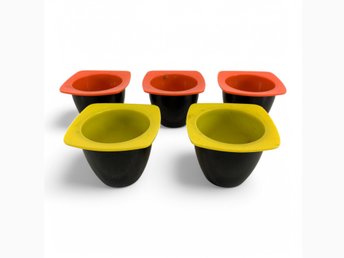 Retro, 6 äggkoppar i plast, okänd producent, h 3,5 ø 11,5 cm, 60-tal