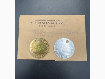 Vintage Sörstafors Pappersbruks AB Token, parti om 2 marker - 350, Sporrong