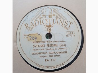 78 RPM Radiotjänst - Svenskt Festspel Stockholms radioorkester Tor Mann RA117