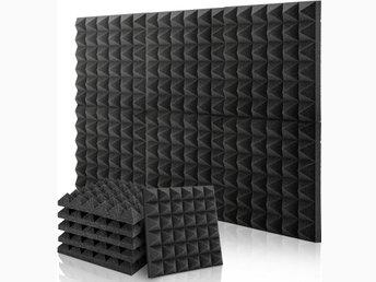 Nya Pyramid Akustikskum 24 st Svarta Ljudabsorberande Paneler Skum Akustik