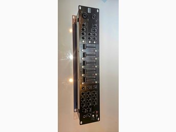 4-kanals mixer för 12V och 230V med dubbla VU-mätare. 10 in/utgångar