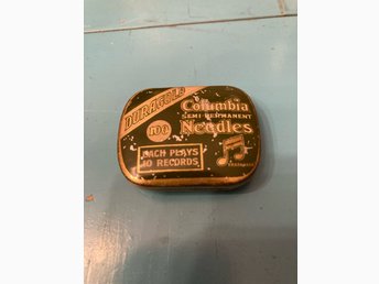 Grammofon nålar i vintage plåtask