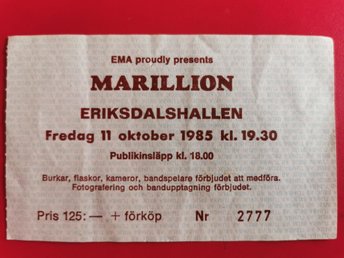 Marillion Konsertbiljett Eriksdalshallen 1985