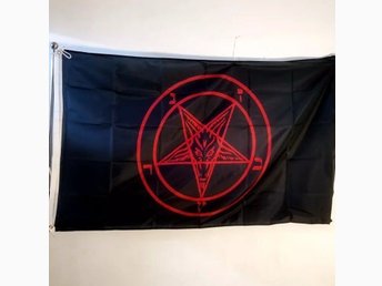 [Ny] Flagga Baphomet 90 x 150 Ockult Satan Satanism Pentagram Stor Röd