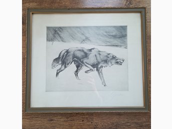 Litografi Varg. Knut Oscar Gaston Wilhelm