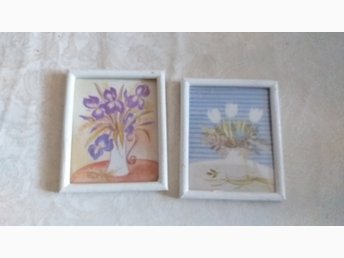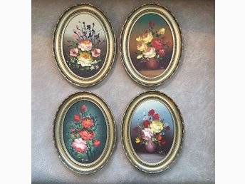 4 st Blomstertavlor 16x21 cm oljemålning