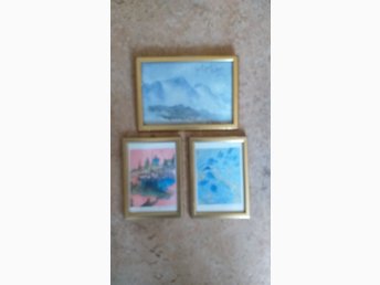 3 st guld färgade ramar med fina motiv /tavlor