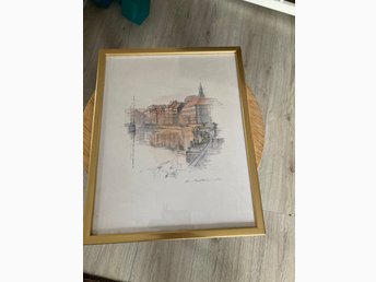 Tavla med stadsmotiv, bredd 30 cm, höjd 37 cm. Gammel strand, Karlshamn