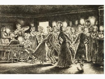 BERTIL BULL HEDLUND (1893-1950). Bergslagsbal, etsning/torrnål, signerad