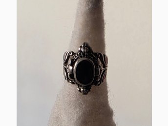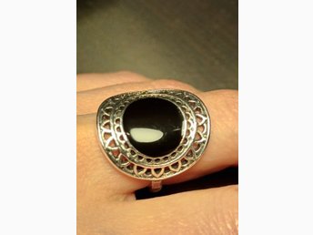 Vintage Silver Ring med Svart Sten, Stämplad 925