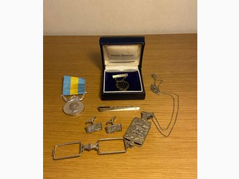 Finare silverpaket med bl.a en vacker lornjett, medalj, slipsnål m.m vikt 81g