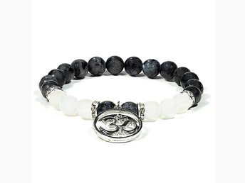 Armband med labradorit/vit agat med Aum, 8 mm