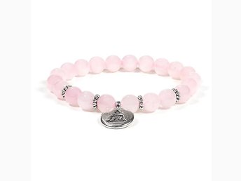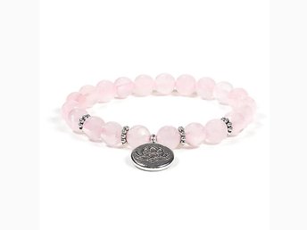 Armband rosenkvarts med hänge lotus, 8 mm pärlor