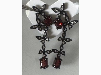 Örhängen med svart metall och garnet kristall
