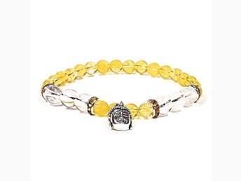 Armband Buddha av citrin och bergkristall, 8 mm pärlor