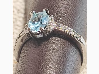 Vacker Akvamarin Ring 925 Sterling Silver Halo Zirconer Ø19mm