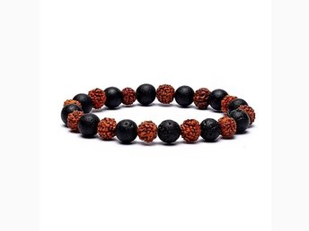 Rudraksha/lavasten armband, elastiskt, 8 mm