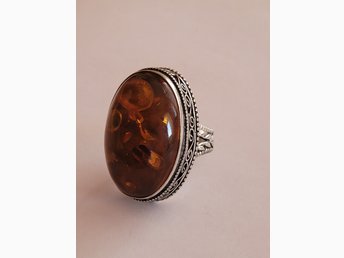 Ring med bärnsten, storlek 17,5