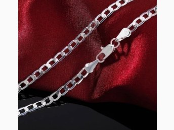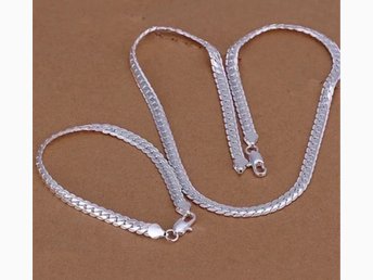 Helt Nytt: Halsband, Armband, pläterad med äkta silver 925, 45 cm/20 cm, 4 mm