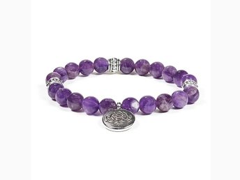 Armband ametist med hänge lotus, 8 mm pärlor