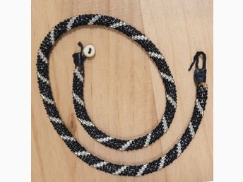 Virkat pärlhalsband i spiralmönster