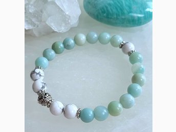 Kristallarmband Amazonit & Howlit, 8mm-pärlor
