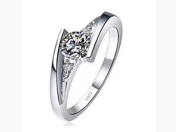 Helt Nytt: Ring pläterad med äkta silver 925 med Zirkon, ST 5, Ca 14-15 mm