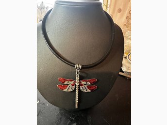 Läderhalsband med en slända