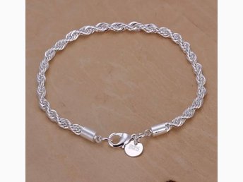 Helt Nytt: Armband pläterad med äkta silver 925, 20 cm, 4 mm, så fint