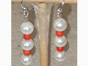 Örhängen Pärlor och Röd BambuKorall Krok i 925 Sterling Silver