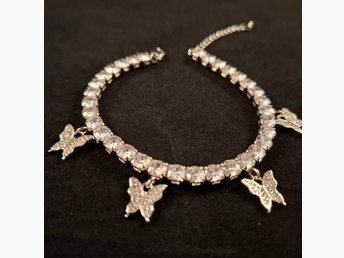 Tennis Silverarmband Med Glittrande Fjärilar
