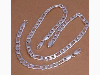 HELT NYTT! Halsband och armband pläterad med äkta silver 925, ca 55/20 cm, 6 mm