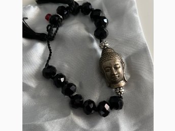 Armband rosenkvarts med hänge Buddha, 8 mm pärlor