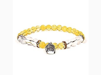 Armband Buddha av citrin och bergkristall, 8 mm pärlor