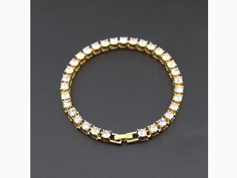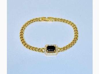 GuldPläterad 24k GuldPläterad Armband med Svart Zirkonia och Diamenter