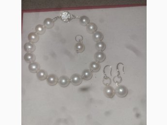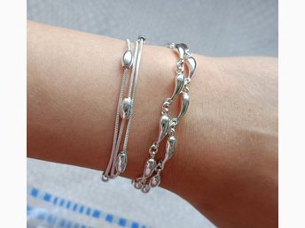 Armband, tretrådigt / Halsband med vattendroppar, silverplätering - NYSKICK!