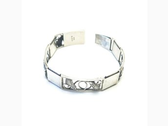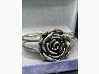 Vintage äldre silverfärgat öppningsbart armband med ros