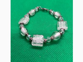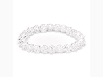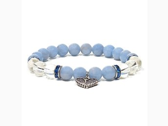 Armband i angelit/bergskristall med hjärta, elastiskt, 8 mm