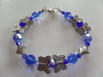 ARMBAND AV FAZETTERADE GLASPÄRLOR OCH FJÄRILAR I TIBETSILVER