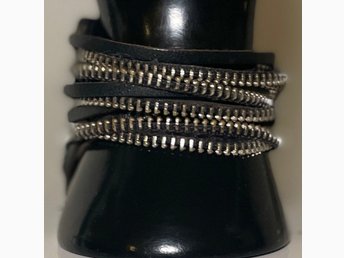 Armband av läder med dragkedjedetaljer. Gott skick.