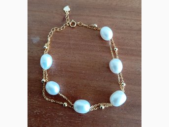 Guldpläterat silver 925 armband med sötvattenspärlor