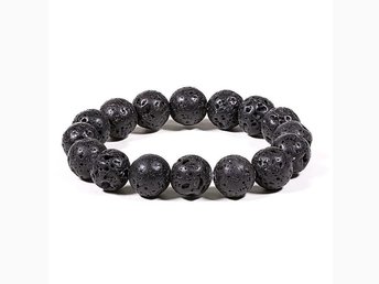 Rudraksha/lavasten armband, elastiskt, 8 mm