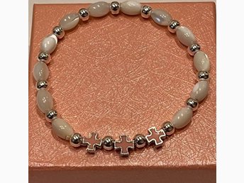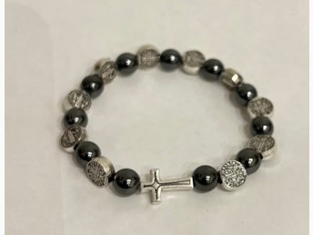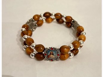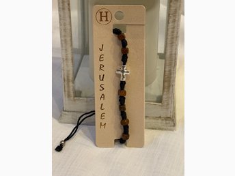 Armband i olivträ pärlor och korset i stål. Från Betlehem.