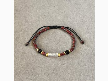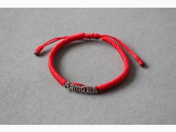 Handgjort tibetanskt flätat röd armband med Om Mani Padme Hum-berlock.